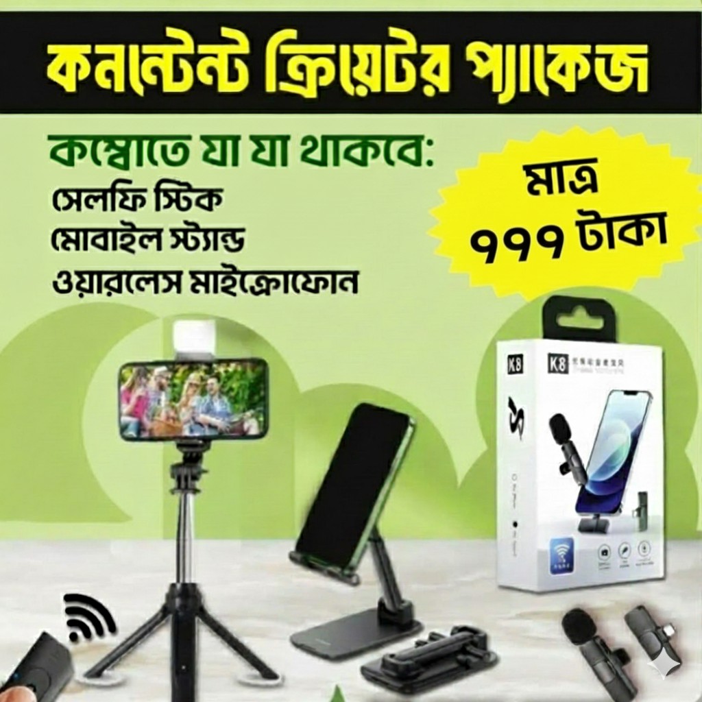 💰 সাশ্রয়ী সমাধান: এই প্যাকেজটি আপনাকে মাত্র ৯৯৯ টাকায় প্রফেশনাল কন্টেন্ট তৈরির জন্য তিনটি প্রধান গ্যাজেট দিচ্ছে।